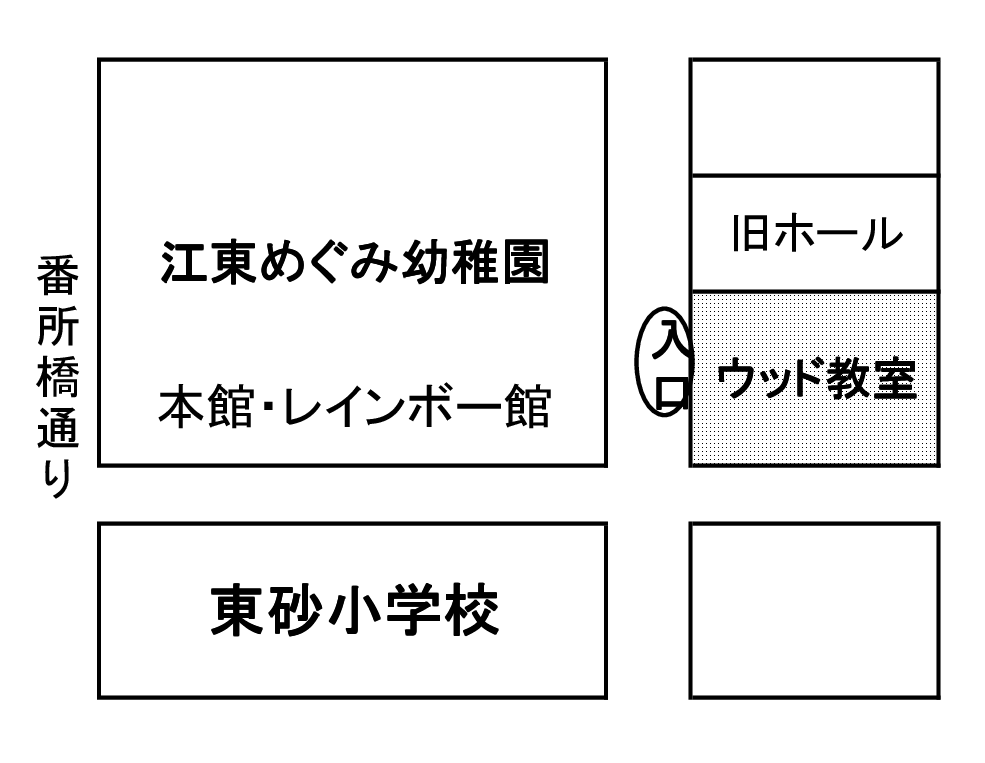 | 場所 | 江東めぐみ幼稚園 旧ホール → ウッド教室に変更になりました![]() |